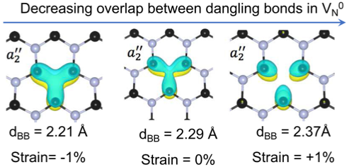 Effect of strain on point defect in hBN. dBB = distance between boron atoms around the defect.
